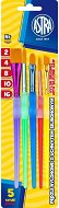 Четките от  Astra S.A.  са с ергономична силиконова дръжка и са създадени за комфорт и удобство при рисуване. Всяка четка има мека, нехлъзгаща силиконова зона за захващане, която осигурява стабилен контрол по време на работа. Косъмът е изработен от висококачествен мек синтетичен материал, подходящ за различни художествени техники. Четките могат да се използват както за покриване на големи площи, така и за детайлна работа върху по-малки повърхности с  акварелни,  темперни,  акрилни  и други видове бои. Комплектът включва 5 размера - №2, №4, №8, №10 и №16, което го прави универсален избор за начинаещи и напреднали художници. ...  |