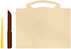 За да създадат Вашите малчугани красиви декорации и фигурки от моделин, от "Filipov" са подготвили този чудесен комплект, който се състои от дъска с дръжка, ножче и допълнителен инструмент за моделиране. Те са подходящи за работа вкъщи и в училище. Изработени са от здрава пластмаса (полистирол) и са в различни цветове. Дъската е с размери 20 x 17.7 cm и има гладка повърхност. Допълнителният инструмент, детето Ви ще може да използва например за образуване на отвори и като шпатула, а в комбинация с ножчето, оформянето на неговите изобретения ще бъде много по-лесно.