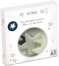 С този комплект от френския производител "Djeco" вашето дете ще се пренесе в необятния космос. Фосфорисциращите фигурки във формата на звезди ще светят в тъмното с мека светлина. За това обаче, трябва добре да се осветят от дневната светлина. Използвайте ги, за да декорирате любимите си тетрадки, кутии за бижута или пък детската стая. Стикерите са с различни размери - от 9 cm до 8.7 cm.