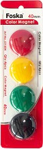 Магнитите от "Foska" са подходящи за закрепяне на бележки върху бялата дъска. Те са с диаметър ∅ 4 cm и могат да се използват и за декорации или за привличане на вниманието. Предлагат се в комплект от 4 броя в червен, жълт, зелен и черен цвят.