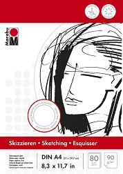 Скицникът от "Marabu" е с гладка структура на хартията, което го прави подходящ за рисуване и скициране. Той има плътност на листовете 90 g/m2, което значи, че върху тях може да се използват графитни и цветни моливи. Хартията, използвана за направата му, не съдържа киселини и не пожълтява с течение на времето. Листовете са захванати с лепило в единия край и имат микроперфорация за лесно отделяне.