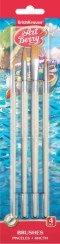 Четките от "Erich Krause" са подходящи за рисуване с акварелни или гваш бои. Те имат висококачествена, дървена дръжка, която е лакирана със защитен лак, а четката им е съставена от синтетичен косъм. Комплекта съдържа 4 броя с различен размер - №2, №3, №5 и №8.
