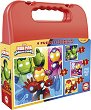 Железният човек и приятели 4 пъзела от 6, 9, 12 и 16 части в куфарче от колекцията Progressive Puzzles |