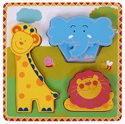 Пъзелът от "Bigjigs Toys" е изработен от дърво, боядисано с безвредни бои на водна основа. Той съдържа 4 елемента с изобразени на тях диви животни. Всеки от тях разполага с пинче, с което детето по-лесно да маха и поставя елементите на обозначените за тях места. Пъзелът има за цел да развива детското цветоусещане и координация, докато го забавлява. ... |