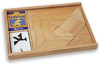 “Седем плочки на умението” - това означава думата “танграм” на китайски. Смята се, че играта е възникнала именно в Китай преди повече от 1100 години. Състои се от седем елемента с геометрични форми (2 малки триъгълника, 2 големи, 1 среден, 1 успоредник, 1 малък квадрат), наречени “тани”, които при подходящо подреждане образуват квадрат. Таните на "Andreu Toys" са изцяло изработени от дърво с дебелина около 2 cm, подредени в дървена кутия с прозрачен капак и с включен към тях комплект от 27 карти с изображения. Целта на играта е да се редят различни фигури, показани като черен силует на картите, но при условие, ... |