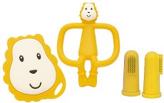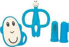 Бебешкият комплект на Matchstick Monkey включва най-необходимите аксесоари за грижата за венците и зъбките на вашето бебе. Той съдържа 2 гризалки и 2 броя накрайници за миене на зъби от мек и гъвкав силикон. Всички аксесоари са снабдени с антимикробна технология BioCote Antimicrobial Technology, която унищожава до 99.99% от микробите в рамките на 2 часа, така че да се поддържа добра хигиена. Гризалките са особено подходящи за успокоение на болката във венците при никнене на първите зъбки на бебето. Едната от тях е плоска, с форма на усмихнато личице на лъвче, като задната ѝ страна е с релефна повърхност за ... |
