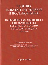 Съставителство и бележки: проф. Веселин Вучков, Евгени Стоянов. ... Сборникът "Постановления и тълкувателни решения на ВКС (респ. ВС) на Република България по наказателни дела 1957 - 2020" съдържа постановления и тълкувателни решения на ВКС (респ. ВС) за период от шестдесет и три години: от 1957 г. до 2020 г. включително. През 1991 г. Съюзът на юристите в България издаде сборник "Постановления и тълкувателни решения на ВС на РБ по наказателни дела", обхващащ периода от 1953 г. до 1990 г. В настоящия сборник са включени всички постановления и тълкувателни решения на Върховния касационен съд и ... |