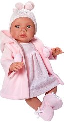 Куклата бебе Мария от "Asi" е с височина 43 cm. За направата ѝ е вложен ръчен труд, като са използвани нетоксични материали с най-високо качество. За тялото на бебето е използван приятен на допир винил. Куклата ще ви впечатли с изключително изразителните и пленителни черти, които я правят съвършена, почти като истинско бебе. Производителят на куклата е положил много усилия и в създаването на тоалет за куклата бебе, така че той да отговаря на Мария, която сама по себе си е съвършена. Тя е облечена в бяла рокличка на райета и цветчета, а на главата си има шапка в тон с роклята, която се завързва посредством ... |