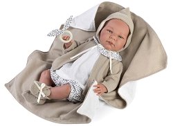 Дарио е част от серията "Reborn", където ще откриете още кукли бебета по темата. ... Куклата бебе Дарио от "Asi" е с височина 46 cm. За направата ѝ е вложен ръчен труд, като са използвани нетоксични материали с най-високо качество. За главата, ръчичките и краченцата на бебето е използван приятен на допир винил, а тялото ѝ е меко - направено от плат. Дарио ще ви впечатли с изключително изразителните и пленителни черти, които го правят да изглежда като истинско бебе. Дарио е облечен в бяла блузка и кафява жилетка с качулка, обут е с бели панталонки на бежови орнаменти, а крачетата му са ... |