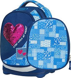 Ученическата раница е част от серията "Petit", където ще намерите още раници с две лица. ... Ученическата раница от "Target" е с подплатен ергономичен гръб. Презрамките са омекотени, регулируеми и позицията им може да се мести 3 степени нагоре или надолу, в зависимост височината на детето. Разполага с едно основно отделение с текстилна преграда, голям преден джоб и малък преден джоб. Особеното при тази раница е, че разполага с две различни по дизайн сменящи се лица на предния джоб, които се прикрепват с помощта на цип. Също има и 2 странични мрежести джоба с ластик. Раницата е с твърдо дъно и има ... |