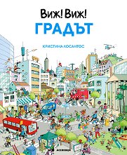 Виж! Виж! Градът е книга с елементи за търсене, в която децата ще открият стотици елементи."От сутринта до вечерта много забавления се случват из града. Жителите ти проследи, елементи и сценки намери. Кой на работа отива? Някой разхожда ли се, или пък поспива? Герои ти открий различни - цветни, интересни и комични." Кристина Лосантос Книгата е част от поредицата Виж! Виж! на Кристина Лосантос. ... |