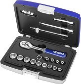 Гедорето на Expert от серията Radio е подходящо както за домашна, така и за професионална употреба. Съдържа тресчотка, вложки, удължители, Т-образен върток, кардан и адаптер за битове. Тресчотката разполага със 72 зъба и е оборудвана с крушовидна дръжка и 5° извиване за работа на труднодостъпни места. Вложките имат 6-точков OGV профил, увеличаващ контактната повърхност с гайката. Вид и размер на накрайниците: вложки: ∅ 4 mm ∅ 4.5 mm ∅ 5 mm ∅ 5.5 mm ∅ 6 mm ∅ 7 mm ∅ 8 mm ∅ 9 mm ∅ 10 mm ∅ 11 mm ∅ 12 mm ∅ 13 mm ∅ 14 mm ... |