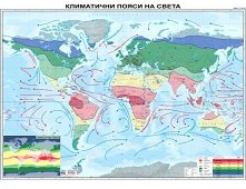 Учебната стенна карта разглежда климатичните пояси и области, предоставяйки информация и за метеорологичните станции, океанските течения и за климата, поместен в данните от климатограмите. Подходяща е за обучението по география в 5. клас и 9. клас. Картата е голямоформатна, двустранно ламинирана с лайсни за закачване на стена. Ламинатът на лицето на картата е мат, за да не блести от светлината на лампите. Специалното съдържание на картата е съобразено и онагледява изучавания учебен материал поместен във всички одобрени от МОН учебници. Картата е с размери 107 x 180 cm. ... |