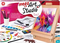 Комплектът за рисуване 5 в 1 от As Company е най-пълният творчески сет, създаден да помогне на децата да се научат да рисуват като истински художници. Комплектът включва дървен куфар, който се разгъва и превръща в удобен статив, подходящ за платна и панели. Вътре са събрани всички необходими материали - акрилни и акварелни бои, четки, моливи, палитра, гума, острилка, цветен кръг и ръководство с инструкции за различни техники на рисуване. Децата могат да започнат със скициране и смесване на цветове, следвайки стъпките от включеното ръководство. Комплектът съдържа и тетрадка за рисуване с 15 акварелни листа, ...