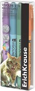 Комплектът четки от серията Big City Cats на Erich Krause съдържа 4 качествени четки, подходящи за рисуване с акварелни бои, темперни бои и плакатни техники. Включени са 3 кръгли четки - №2, №3 и №5, както и 1 плоска четка №8, които позволяват работа както по детайлни елементи, така и по широки повърхности. Работната част на всяка четка е защитена с гумираща смес, която предпазва косъма при съхранение и транспортиране. Дръжките са изработени от естествено дърво, покрито със защитен лак за дълготрайност и удобен захват. Металната алуминиева ферула е устойчива на корозия и осигурява стабилно закрепване на косъма. ... |