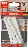 Дюбелите Tetrafix XL на Tox са предназначени за монтаж в различни строителни материали. Изработени са от пластмаса и разполагат със спираловидна форма за лесно постигане на възлов ефект и здраво закрепване. При закрепване със силова връзка прилагат само лек натиск когато се разтварят и поради разпределението на натиска дюбелите могат да се използват при малки разстояния между отворите и в близост до ръбове. Външните триъгълни кантове пречат на дюбелите да се въртят, а разделената на 4 глава, предотвратява потъването им в отвора и позволява издърпване при проходен монтаж. ... |