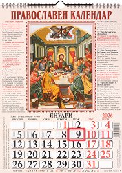 Календарът за 2026 г. е дванадесетлистов и съдържа изображения на различна икона за всеки месец от годината. Православният календар е вертикално ориентиран и се отваря посредством спирала, на която е нанизана метална лента, служеща за лесно закачане. Съдържа: именни дни; по-важните църковни празници; лунните фази. Размери на календара: 29 x 39 cm. ... |