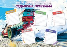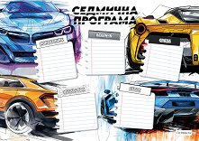 Напиши часовете от програмата за училище и бъди винаги подготвен със седмичните програми на Перфекта! Програмата допълва перфектно колекцията с ученически тетрадки Автомобили. Открий всички програми за училище на издателство Перфекта. ...