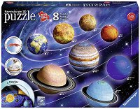 3D пъзелът от Ravensburger е подходящ за деца над 7-годишна възраст. Когато се нареди, той представлява слънчевата система. Състои се от 522 части за подреждане, за които не е необходимо използването на лепило. Към комплекта е добавен и плакат, който може да бъде окачен на стената в детската стая. ... |