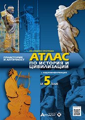 Атласът по история и цивилизации за 5. клас е съставен по актуалната учебна програма на МОН и е съобразен с темите и изискванията на програмата. Картите в атласа са свързани с изучаването на темите Праистория и Античност. На някои от страниците има специфичен матричен баркод (QR код), чрез сканирането на който има бърз и лесен достъп до аудиоинформация по съответната тема. Атласът може да се ползва съвместно с всички одобрени от МОН учебници или самостоятелно, като учебно помагало. Съставен е от картографско издателство с десетилетия традиции в областта на картографията и специалисти в областта на историческата наука. ... |