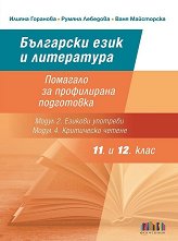 Помагалото е предназначено за профилирана подготовка по български език и литература в 11. клас и 12. клас. В него са представени два от четирите модула, включени в програмата: за компонента Български език - модул Езикови употреби; за компонента Литература - модул Критическо четене. Темите от модул 2 - Езикови употреби са структурирани в рубрики, всяка от които включва дейностите: Актуализирам и осмислям информация; Прилагам знания и умения; Работя индивидуално или в екип; Решавам тест. Темите от модул 4 - Критическо четене са структурирани в рубриките: Контексти / Авторов контекст; Текстът като част от ... |