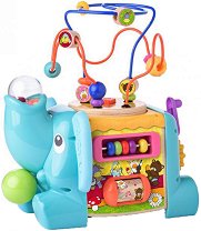 Дидактическият куб от "Classic World" събира в себе си няколко игри и различни елементи, които ще развият фината моторика, координацията и логическото мислене на децата. Игри и елементи, включени в куба: Лабиринт - играта на самия капак на куба. Представлява плетеница от 2 метални "релси" на които са нанизани шарени мъниста. Целта е малчуганът да ги придвижва от единия край на релсата до другия. Лабиринт с фигурка - целта на тази игра е да придвижат фигурката от единия край до другия. Лабиринт с топчета - лабиринтът представлява колело пълно с топчета и с 4 дръжки. С тяхна помощ детето ще ... |