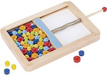 Играта от Goki е идеална за развиването на двигателните умения на децата. С нея ще се забавляват не само малчуганите, но и възрастните. Комплектът се състои от рамка за подреждане и 54 цветни диска. Елементите са изработени от дърво, боядисано с безвредни бои на водна основа. Играта е подходяща за деца над 4 години и в нея могат да участват 2-ма или повече играчи. Времетраенето на играта е около 30 минути. Как се играе: Игралните фигури се смесват и се поставят на игралното поле. След това целта е да премахнете възможно най-много цветни дискове един след друг, без лентата за натиск да се движи. Когато лентата за ...