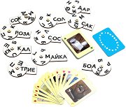 Играта Думички УРА! от Неща с душа съдържа 10 въртящи се дървени плочки за образуване на думи и 50 карти със снимки. С всяка плочка могат да се съставят точно 5 думи, като на всяка дума отговаря точно определена карта. В долния десен ъгъл на плочките има гравиран малък символ (детелина, сърце и т.н.), който съответства на символа на картите и показва кои карти към коя плочка се отнасят. Целта на играта е децата да упражняват разпознаването и произнасянето на буквите и да стимулира интереса им към четене в началния етап на изграждане на умението. Всеки родител или специалист може да използва играта по избран от него ... |