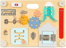 Децата ще се забавляват с двустранната дъска с активности. Тя разполага със зъбни колела, резе с верига, лабиринт, часовник с движещи се стрелки, илюстрации на времето, велкро лента, цип, къща с врати за отваряне, бутон за превключване и много други. Децата могат да научат как се казват месеците и дните от седмицата на английски език. Дъската има дръжка, чрез която може лесно да се пренася. Играта с нея спомага за подобряването на сръчността, фината моторика, координацията око-ръка и въображението. Размерите на дъската са 38 x 27.5 cm. За метода на Монтесори Революционен образователен метод - така би звучало най- ... |