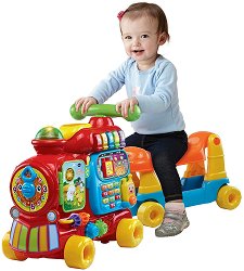 Ако образователните играчки ви допадат и сте от родителите, които предпочитат децата им да научават по нещо ново докато се забавляват, то активното влакче 4 в 1 от "Vtech" отговаря точно на вашите критерии. Комплектът се състои от локомотив с различни активности, трансформиращ се вагон и цветен конструктор с 13 едри елементи. Влакът е подходящ за деца над 1 година и е проектиран така, че да расте заедно с детето, като предлага 4 различни забавления - режим за игра в седнало положение, проходилка, вагон за теглене и яздене. Локомотивчето ще отведе детето на вълнуващо пътешествие през разнообразни занимания, ... |