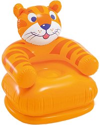Надуваемото кресло от Intex е с формата на тигър и е подходящо за външна и вътрешна употреба. Освен че е подходящо място за отмора след дългите игри в пясъка, симпатичният приятел може да краси и детската стая у дома. Креслото се надува лесно, a в надуто състояние то е с размери 65 / 64 / 79 cm. Максималната тежест, която може да понесе, е 35 kg. Ако ви трябва повече пространство, винаги може да го приберете в чанта или малка кутия. Към комплекта е включена и ремонтна лепенка. За да надуете най-бързо и лесно този продукт, ви е необходима помпа. При спукване на продукта, може да го залепите с лепило или лепенка. ... |