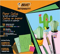 Заедно с комплекта Paper Cactus Kit от серията Intensity на BIC може да създадете 3 красиви кактуса, които да използвате като украса у дома или в класната стая. След като приключите с изработката на фигурките, може да ги оцветите и декорирате с пишещите средства, включени в комплекта. Кутията съдържа 8 флумастера с дебелина 0.4 mm, с които да създавате фини линии, 12 флумастера с широк връх, 2 метални перманентни маркера, 22 форми, отпечатани върху цветна хартия за сглобяване на кактусите и инструкции. Опаковката е с размери 23.4 / 20 / 4.5 cm. ...