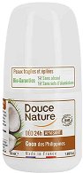 99% от съставките в ролона са с естествен произход, като 20% от всички са от биологично земеделие*. ... Ролон дезодорантът от Douce Nature ефективно предпазва от появата на неприятни миризми. Грижовната му формула е без съдържание на алкохол и алуминиеви соли. Тя успокоява кожата в продължение на 24 часа**. Ролон дезодорантът притежава екзотичен аромат на кокос. Подходящ е за нуждите на чувствителната кожа. Формулата на ролонът е обогатена с био кокосово масло *, което поддържа оптималния баланс на влага в кожата. Включен е био сок от алое вера*, който притежава противовъзпалителни и овлажняващи свойства. Добавеното ... |