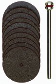 Комплект от 10 броя армирани дискове, изработени от алуминиев оксид, подходящи за рязане на стомана, цветни метали, дърво и пластмаса. Шпиндел: ∅ 2.35 mm. ...