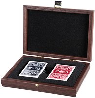 От "Manopoulos" предлагат на вашето внимание комплект за игра на карти с луксозна кутия. Той се състои от практична дървена кутия, изработена от орехово дърво и 2 тестета карти за игра в различни цветове, изработени от пластифициран картон. Независимо от повода, комплектът ще зарадва всеки любител на класически карти игра. Кутията е с размери 24 x 17 cm. ... |