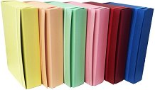 Кутията е произведен от цветен картон с плътност 350 g/m 2 и е покрита с UV лак. Подходяща е за съхранение на тетрадки, документи, хартия и листове с формат A4. Затваря се с три капака и ластик. Широчина на бокса е 6 cm. ... |