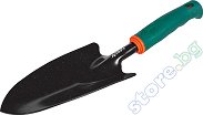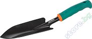 Лопатката е с къса дръжка и е подходяща за засаждане и пресаждане. Работната ѝ част е изработена от закалена стомана с лаково покритие, а дръжката от пластмаса. Инструментът има отвор за закачане и е с дължина 26 cm. ... |