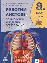 Първа част за 9. клас при обучение с интензивно изучаване на чужд език. ... Работните листове по биология и здравно образование съдържат повече от 250 задачи, които са: достъпно, кратко и точно формулирани; подкрепени с цветни научни илюстрации, схеми, графики и диаграми; с онлайн отговори към всяка една от тях; надежден инструмент за съвременно преподаване и оценяване; възможност за онагледяване на индивидуалния напредък на ученика и обективна самооценка. Учебната система по биология и здравно образование за 8. клас се състои от: учебник работни листове книга за учителя Изброените компоненти от ... |