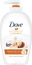 Течният сапун на Dove е с формула, обогатена с деликатни почистващи агенти и хидратиращ крем. Той прави кожата мека, гладка и овлажнена, благодарение на вложеното в състава масло от ший. То помага за запазване естествения баланс на кожата. Течният сапун Dove е с топъл аромат на ванилия, който глези сетивата. Опаковката е лесна за използване, тъй като е с практична помпичка, която много добре разпределя количеството сапун за едно измиване на ръцете. ... |