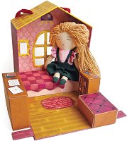 Куклата Ани от Svoora ще придружава децата навсякъде в техните приключения. Тя разполага с бродирани черти на лицето, дълга руса коса, розова блуза и тъмнозелена рокля. Ани има къща, която е обзаведена с 5 двустранни картонени блокчета. Блокчетата са илюстрирани с легло, гардероб, пералня и печка. Вратата на къщата се отваря и затваря чрез магнит. Тя е лесно преносима, благодарение на своята дръжка и децата могат да я вземат със себе си навсякъде. Дайте им шанс да развият своето въображение и креативност като разиграват ролеви игри и се забавляват с новата си приятелка. Размерите на куклата са 20 x 4 cm, а тези на ... |
