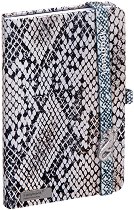 Луксозният бележник "Lanybook" от колекция "Snake Charmer" е със змийски мотиви и ластична лента за затваряне с гущер с кристали Swarovski. Технически специфики на тефтера: размери: 9.5 x 14.5 cm; твърди корици със змийски мотиви; брой страници: 192; хартия - бяла, 80 gr.; широки редове; огледало върху предната вътрешна корица; разделителна лента; заоблени ъгли; ластична лента за затваряне с гущер с кристали Swarovski; ластик - държач за молив или химикалка; джоб за съхранение на бележки върху задната вътрешна корица. ...