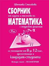 В тази книга са включени над 700 подробно решени задачи и тестове от учебната програма за 8. клас, 9. клас, 10. клас, 11. клас и 12. клас, за подготовка на зрелостни и конкурсни изпити от последните пет години. Решенията са с подробни обяснения, което ще допринесе както за попълване на пропуски в учебната дейност, така и за развитие и усъвършенстване на вашите знания. Важно! Изданието е разработено преди промените в учебната програма в периода от 2016 до 2022 г. Ако имате нужда от подвързия за различни формати учебници, тетрадки и учебни помагала, посетете нашата специална секция Подвързии. ... |