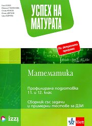 Профилирана подготовка 11. клас и 12. клас. ... Помагалото от поредицата Успех на матурата на издателство Клет България е предназначено за подготовка на ученици за втория задължителен зрелостен изпит по математика след профилирано обучение в 11. клас и 12. клас. Изданието е създадено в съответствие с новата учебно-изпитна програма по математика. Изданието ще съдейства за: успешното представяне на дванадесетокласниците на държавния зрелостен изпит; усъвършенстването на уменията за решаване на различни типове задачи от профилираната подготовка; лесна проверка и самооценка на усвоените знания и умения от ... |