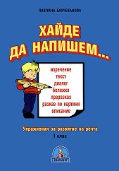 "Хайде да напишем..." предоставя систематизирана информация за основните видове писмени изложения, предвидени за изучаване в началното училище. Предложените упражнения са с нарастваща сложност и обем. Така малките ученици стъпка по стъпка ще овладяват полезни умения, които ще им служат и в по-горните класове. Хайде да напишем: изречение текст диалог бележка преразказ разказ по картини описание Важно! Моля имайте предвид, че изданието е с недобра полиграфическа изработка и не изглежда в перфектния вид, в който обичайно са книгите, които предлагаме. ... |