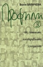 66 знаменити пловдивчани споделят ... "Познавам и меда, и жилото на журналистиката, но за всичките години работа моето голямо изкушение си остана интервюто – харесвам неговата почтеност. Интервюто е като моментна снимка, но и много повече. Чрез него можеш да се върнеш в миналото и да прекрачиш в бъдещето. В настоящата (трета по ред) книга са включени 66 интервюта с именити пловдивчани. Разочарован обаче ще остане този, който очаква интриги, клюки и нескопосано белетризиране. В тези записани събеседвания съм се старала да съхраня единствено част от личностите и тяхното време за осъществяване."Ваня Минчева ... |