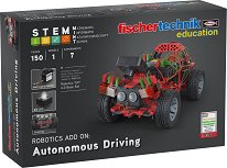 Конструкторът на Fischertechnik Education има за цел да улесни учебната дейност. Той включва 115 части, от които може да бъде сглобен автомобил. Автомобилът има ходова част, серво усилвател, 2 светодиода и кормилно управление. Ходовата част се състои от диференциал и колела. Серво усилвателят има мощност между 4.8 V - 6 V. Допълващият комплект е подходящ за групова работа за от 2 до 4 ученици. Той е може да се използва за обучение в прогимназиален етап. С конструктора могат да се направи 1 модел и 7 експеримента. Учениците могат да построят и програмират автомобил на бъдещето. С него могат да създадат системи като ... |