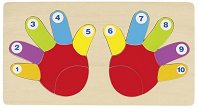 Детският пъзел от Goki е подходящ за малчугани над 2-годишна възраст. Комплектът се състои от основа за редене и 14 пъзелови елемента за подреждане на ръчички. Той е изработен от дърво, изрисувано с безвредни бои на водна основа. Всеки пъзелов елемент пасва на точно определено място върху подложката. Пъзелът ще развива детската координация и усещане за цветове, и ще го научи да брои до 10, докато го забавлява. Подложката е с размери 37.8 x 20.6 cm. ... |