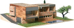 Модел на съвременна къща в средиземноморски стил на "Domus Kits". Моделът е направен от картон, върху който се залепват и изграждат стените и покривите. Размери на модела: 300 / 275 / 110 mm. Мащаб на модела: 1:87. ... |