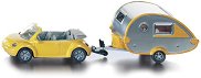 Умаленият модел на спортен автомобил със свален покрив е в комплект със закачена към него каравана. Размерът на колата с караваната е 16.3 / 4.4 / 3.9 cm. Цветът на продукта може да се различава от показания на картинката. ...