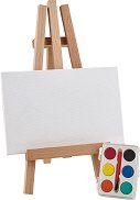 Настолният статив за рисуване е практично и стабилно решение за художници, студенти и любители на изкуството. Изработен е от висококачествено дърво, което осигурява здравина и дълъг живот на употреба. С височина 75 cm, стативът е подходящ за поставяне на платна, картон или блокове за рисуване с различни размери. Компактният му дизайн го прави идеален за използване върху бюро или маса, както у дома, така и в учебна или професионална среда. Лек, удобен и лесен за пренасяне, този статив предлага стабилна опора при рисуване, скициране или излагане на готови творби. ... |
